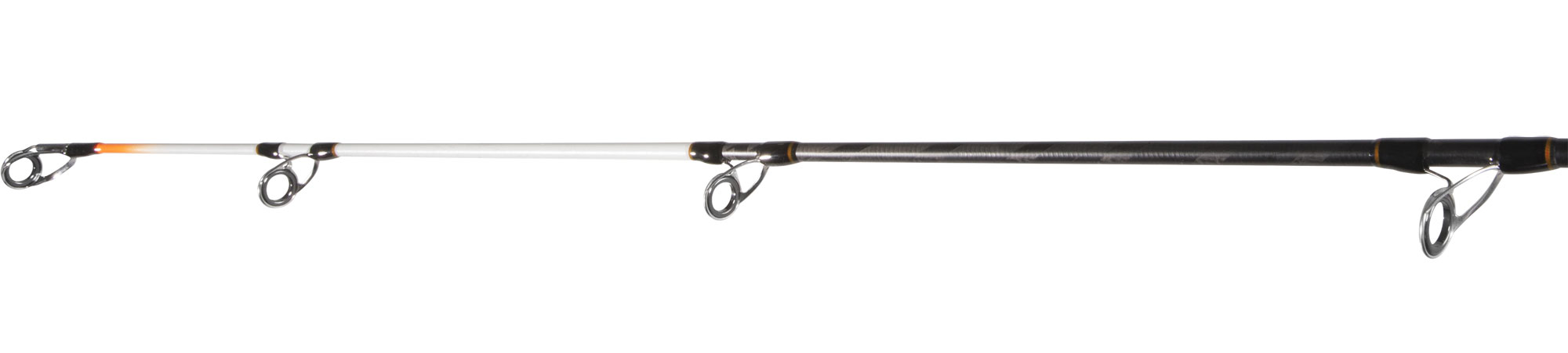 Για οδηγοί πετονιάς/νήματος επιλέχθηκαν της εταιρείας SeaGuide και συγκεκριμένα τα νέα μοντέλα XO με λιγότερο βάρος, υψηλή ποιότητα κεραμικού αλλά και ενισχυμένο σκελετό. Το μέγεθος και η απόσταση των οδηγών σε συνδυασμό με την κλίση τους μπορούν να δεχτούν μεγάλους μηχανισμούς από 60αρι μέγεθος και πάνω ώστε να έχουμε μακρύτερες βολές και ”ελευθερία” κατά την ανάκτηση. Η γραφιτούχα λαβή τοποθετήθηκε στους 71,5 πόντους για σωστό μοχλό κατά την ρίψη. Επίσης στο τελείωμα της λαβής τοποθετήθηκε Eva υλικό σε εργονομικό σχήμα. Δεν θα μπορούσε να παραλείψει το βάψιμο της μύτης σε ευδιάκριτο λευκό χρώμα και φωσφορούχο πορτοκαλί στο τελείωμά της.